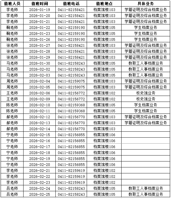 3.毕业生档案转递、在校生查档集中于1月22-26日,2月10、11日办理。