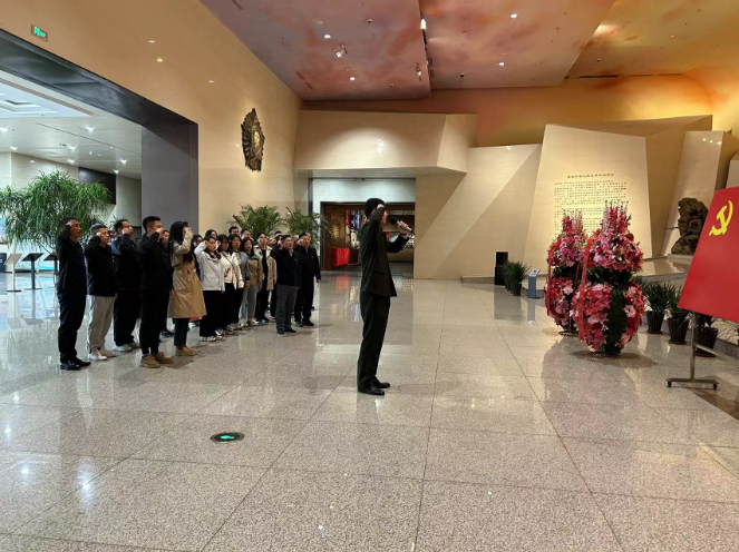 在蒙蒙细雨中,党员一行首先参观了抗美援朝纪念馆。同志们在纪念馆正厅庄严肃立,敬献花篮、鞠躬致敬,向中国人民志愿军英烈表达崇高的敬意和深切的怀念。